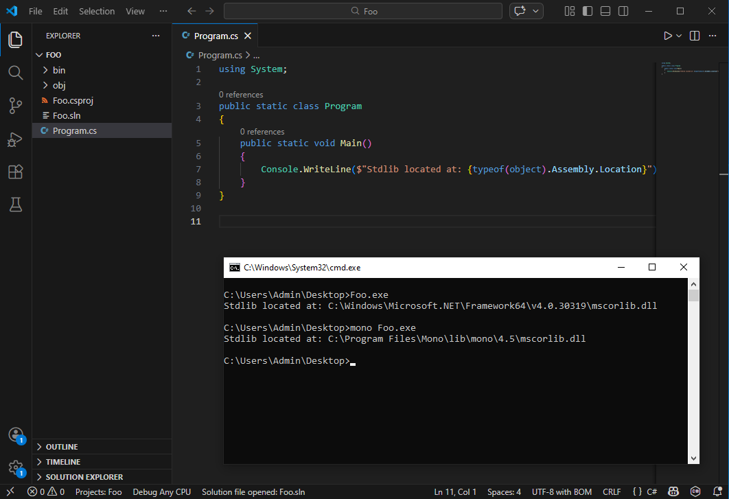 In the context of malware analysis, you probably will almost never interact with Mono (unless you’re analyzing Unity games or non-Windows malware), mainly because the .NET Framework 4.x is installed by default on most Windows machines, removing the need for Mono to run .NET Framework binaries.