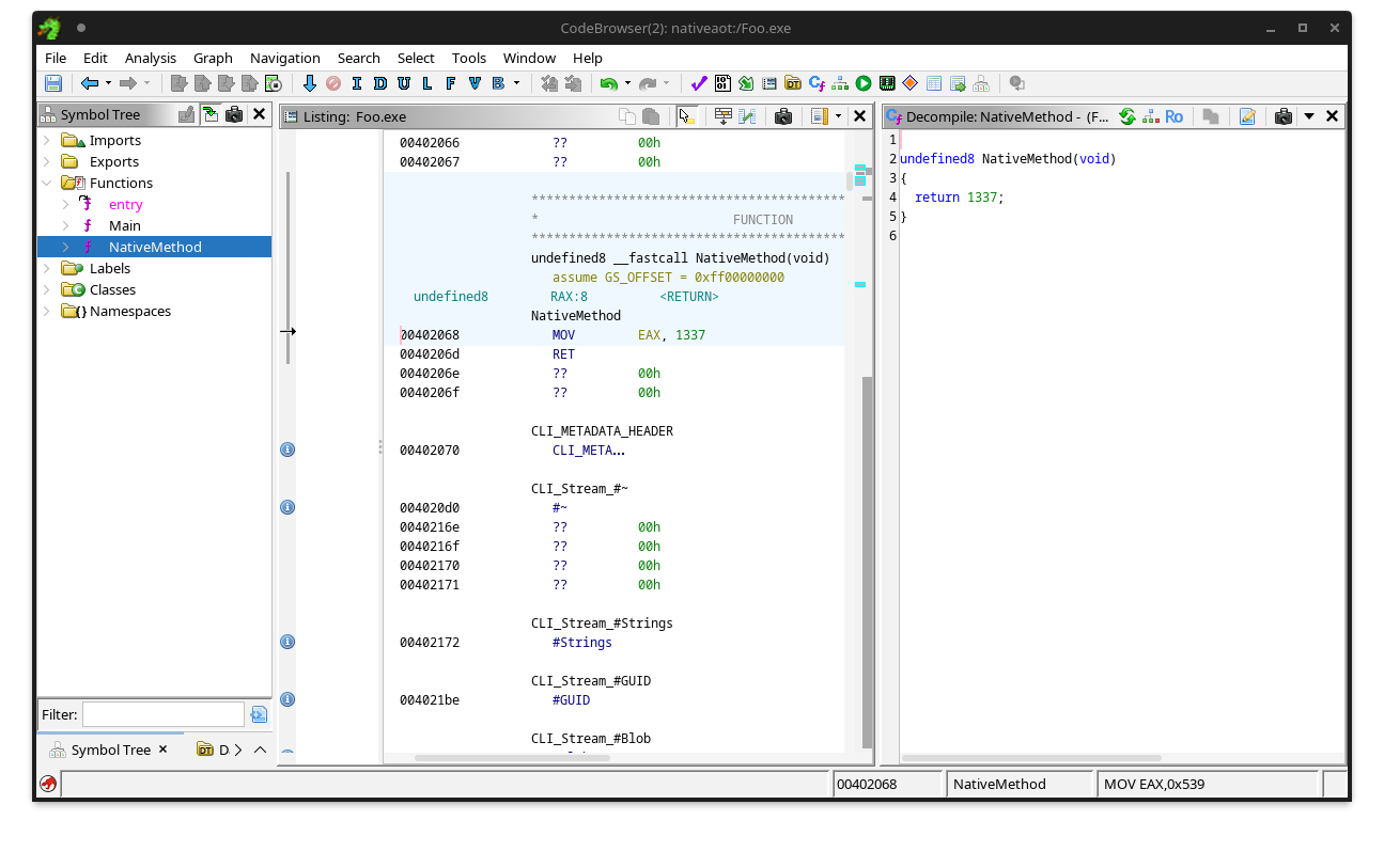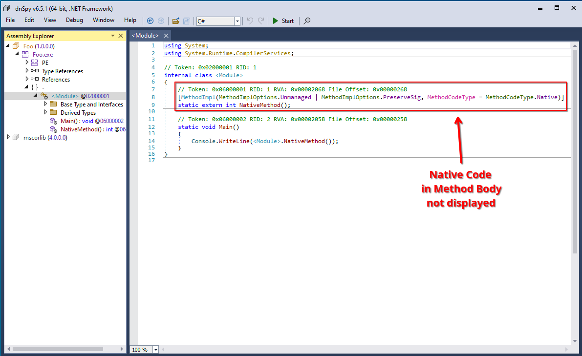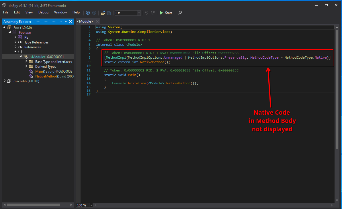 Prominent examples of these “mixed-mode” assemblies are binaries built using the C++/CLI SDK or obfuscated binaries produced by e.g., ConfuserEx that sometimes emit native code to hide it from decompilers. You can also have a look at my previous post on entry points of a .NET binary.