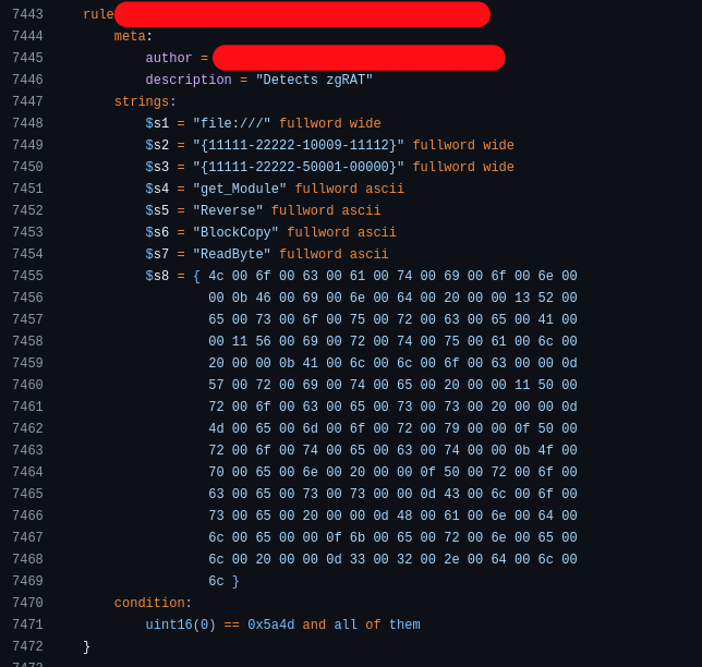 The huge binary blob is already hilarious, but regardless, these strings are not characterizing just zgRAT but any binary protected using .NET Reactor, a popular code obfuscator for .NET that zgRAT just so happens to use.
